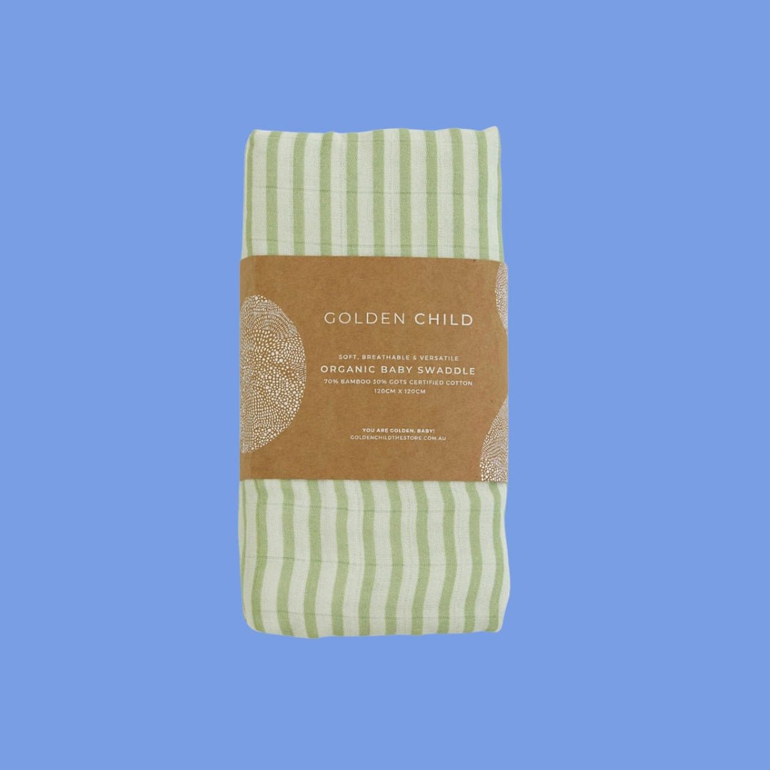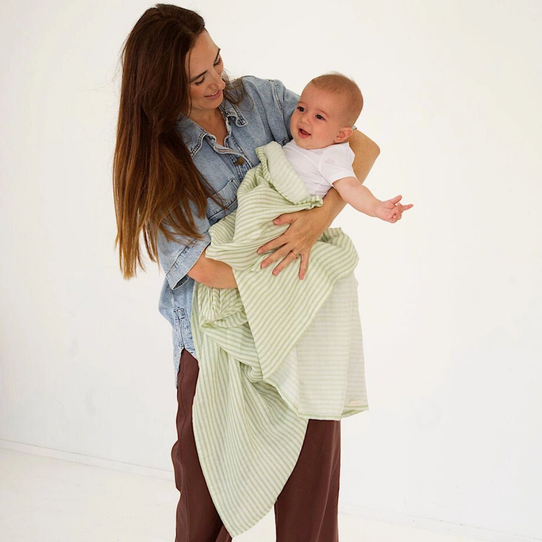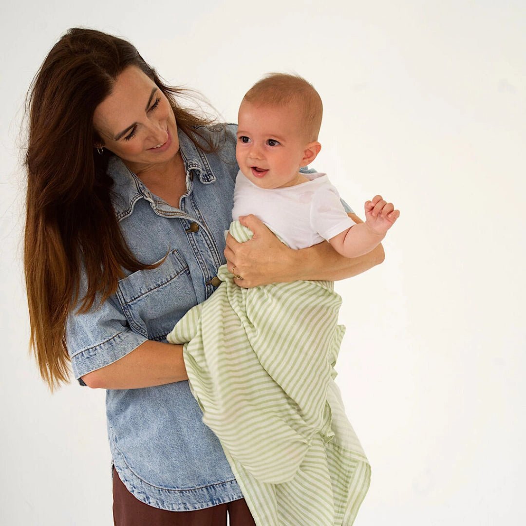 Baby Mini Stripe Organic Bamboo Cotton Baby Muslin Wrap - Lime