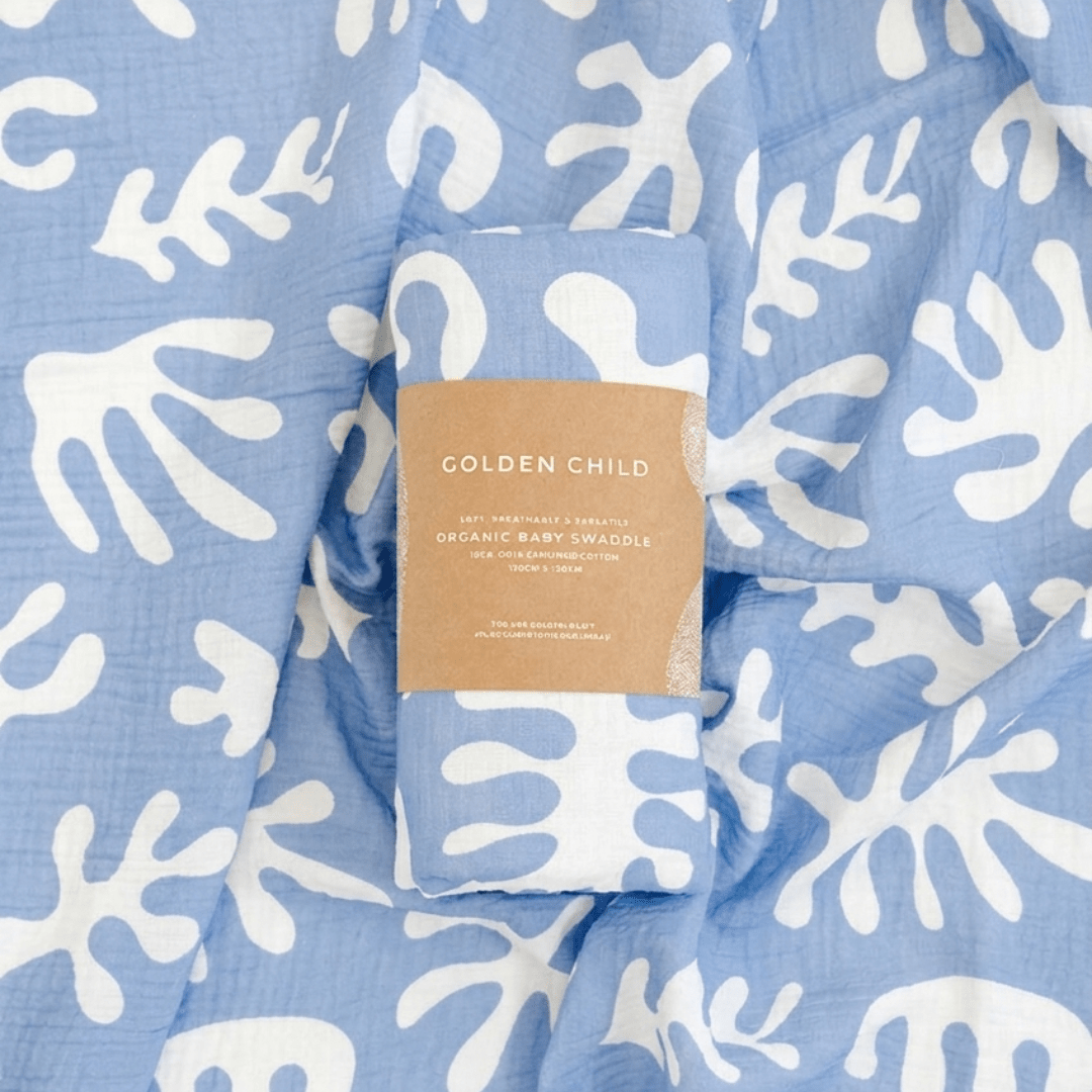 Marine Dream Organic Cotton Baby Muslin Wrap - Golden Blue
