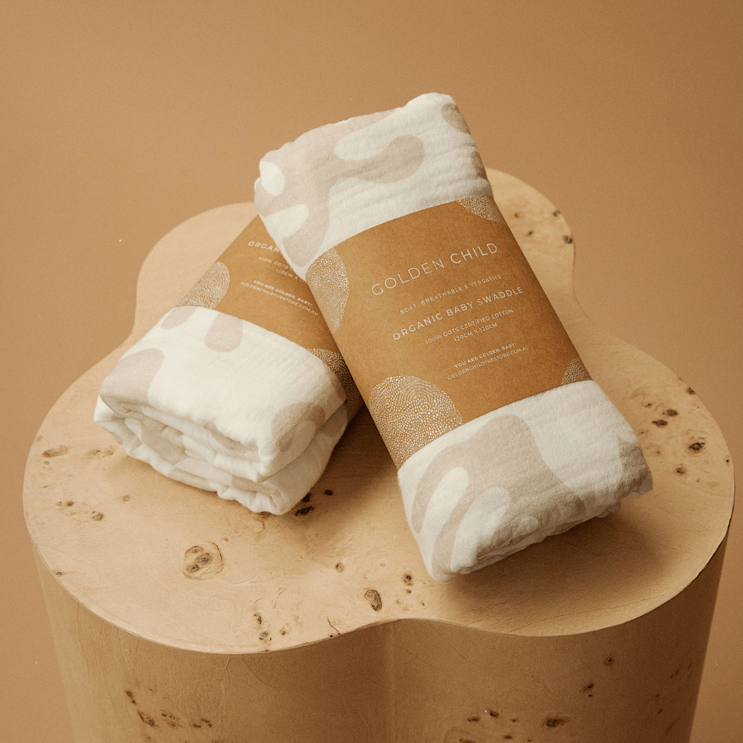 Marine Dream Organic Cotton Baby Swaddle - Stone