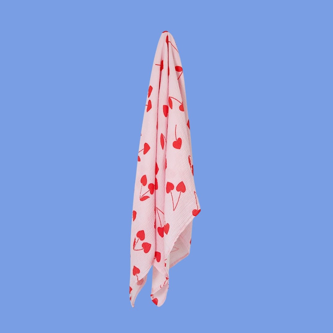Cherry Heart Organic Cotton Baby Muslin Wrap - Candy