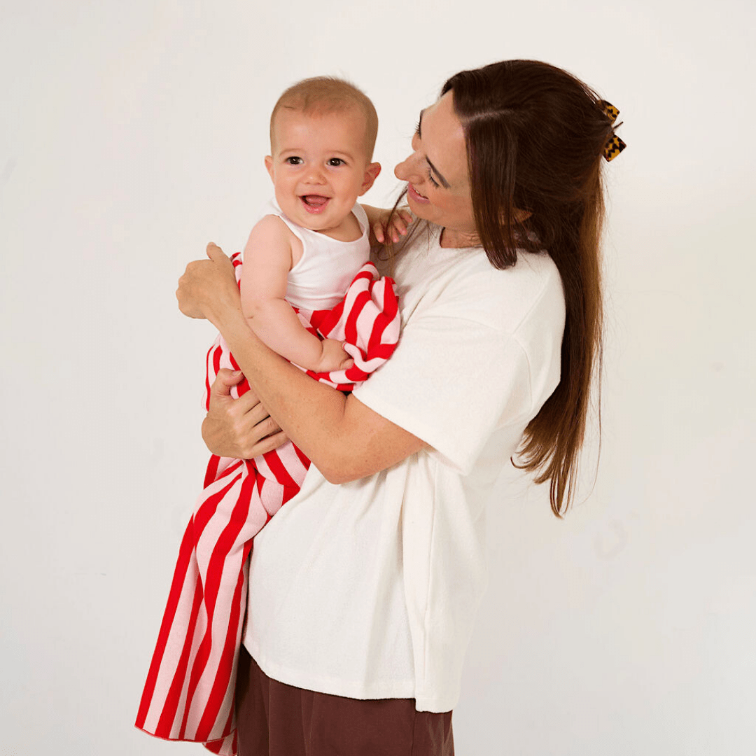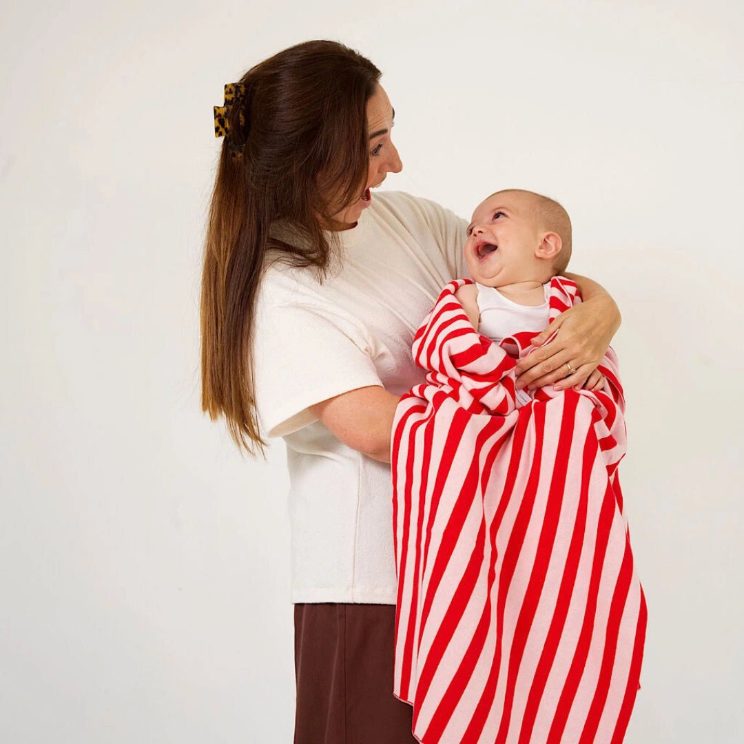 A fun take on a classic essential. Our Retro Striped Blanket in candy pink & red is crafted from 100% organic cotton, offering a beautifully soft, breathable feel that’s gentle on delicate skin. Thoughtfully designed to be gender-neutral, it’s made to be used, washed and loved daily.