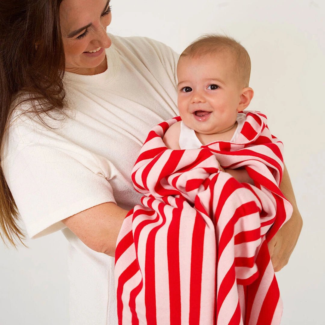 Retro Stripe Organic Cotton Blanket - Candy Pink & Red