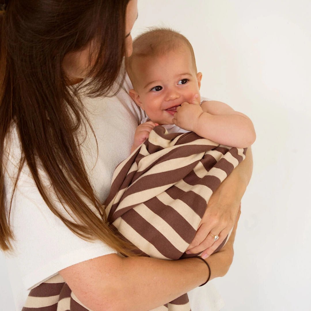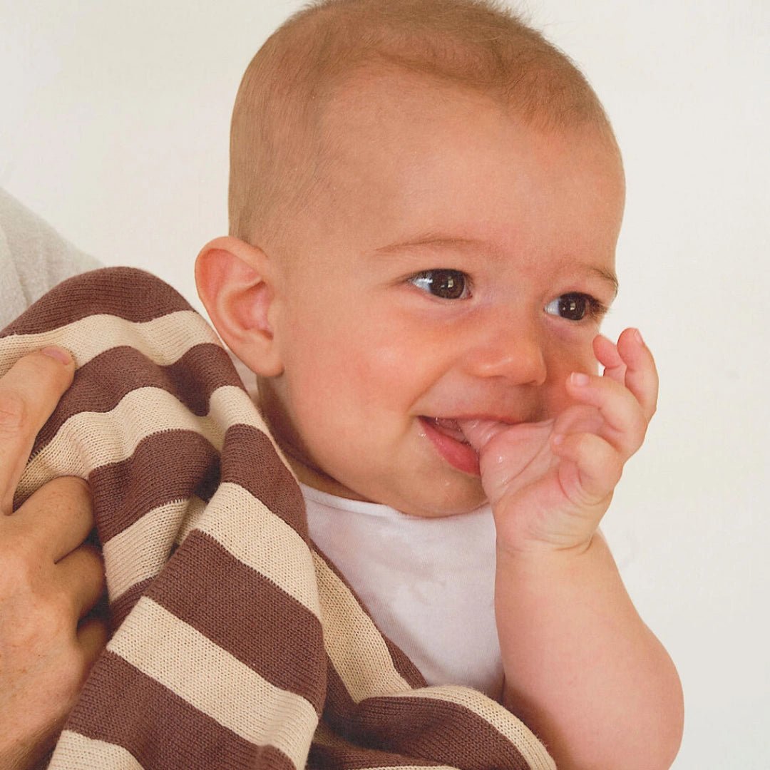 Retro Stripe Organic Cotton Blanket - Chocolate & Sand