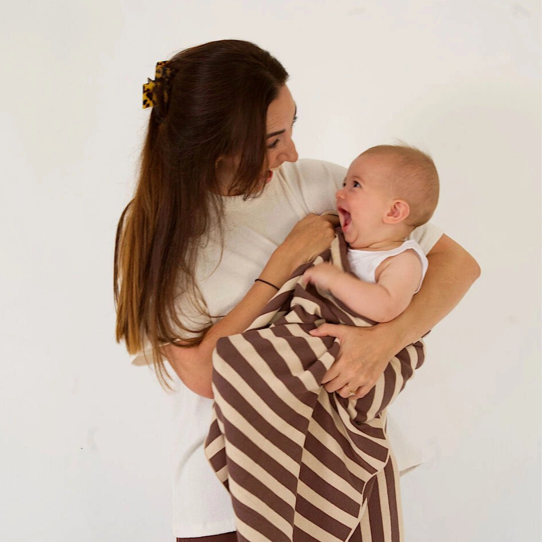 A fun take on a classic essential. Our Retro Striped Blanket in Chocolate & tan is crafted from 100% organic cotton, offering a beautifully soft, breathable feel that’s gentle on delicate skin. Thoughtfully designed to be gender-neutral, it’s made to be used, washed and loved daily.