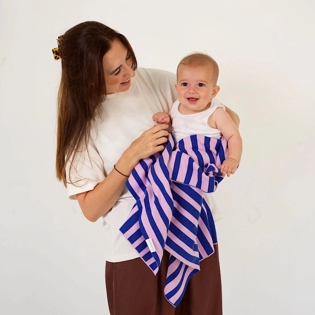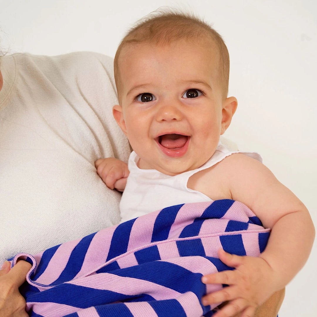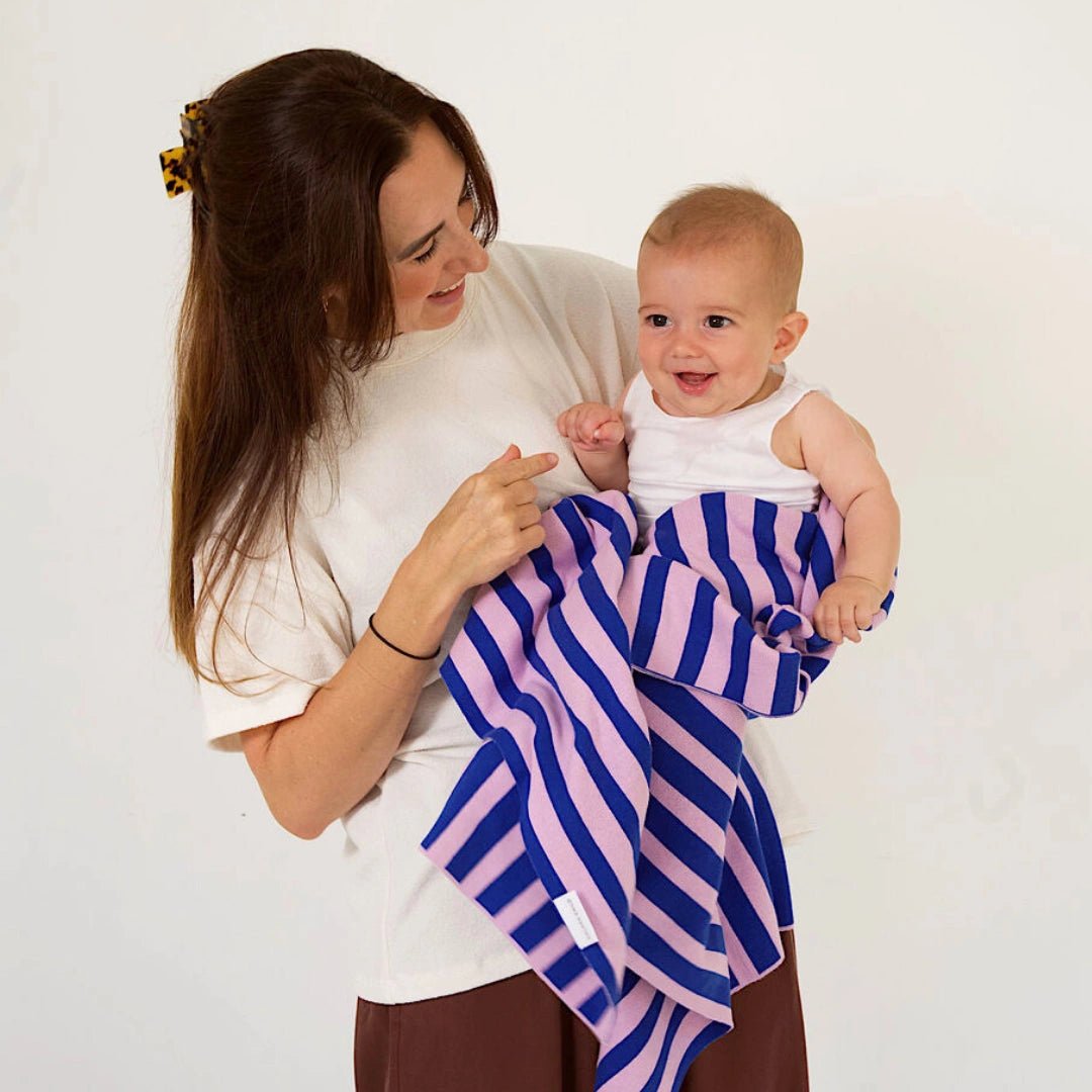 A fun take on a classic essential. Our Retro Striped Blanket in electric blue & lilac is crafted from 100% organic cotton, offering a beautifully soft, breathable feel that’s gentle on delicate skin. Thoughtfully designed to be gender-neutral, it’s made to be used, washed and loved daily.