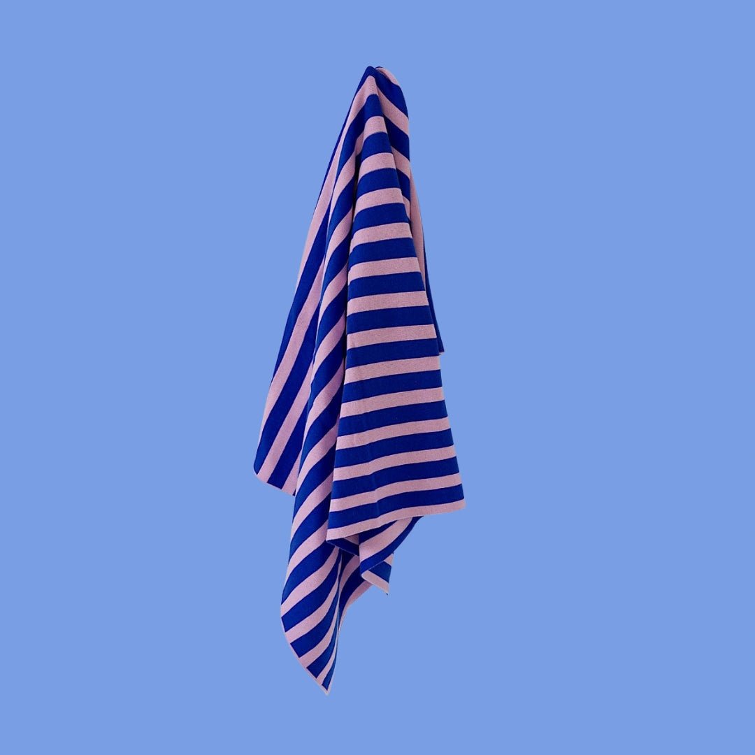 Retro Stripe Organic Cotton Blanket - Electric Blue & Lilac
